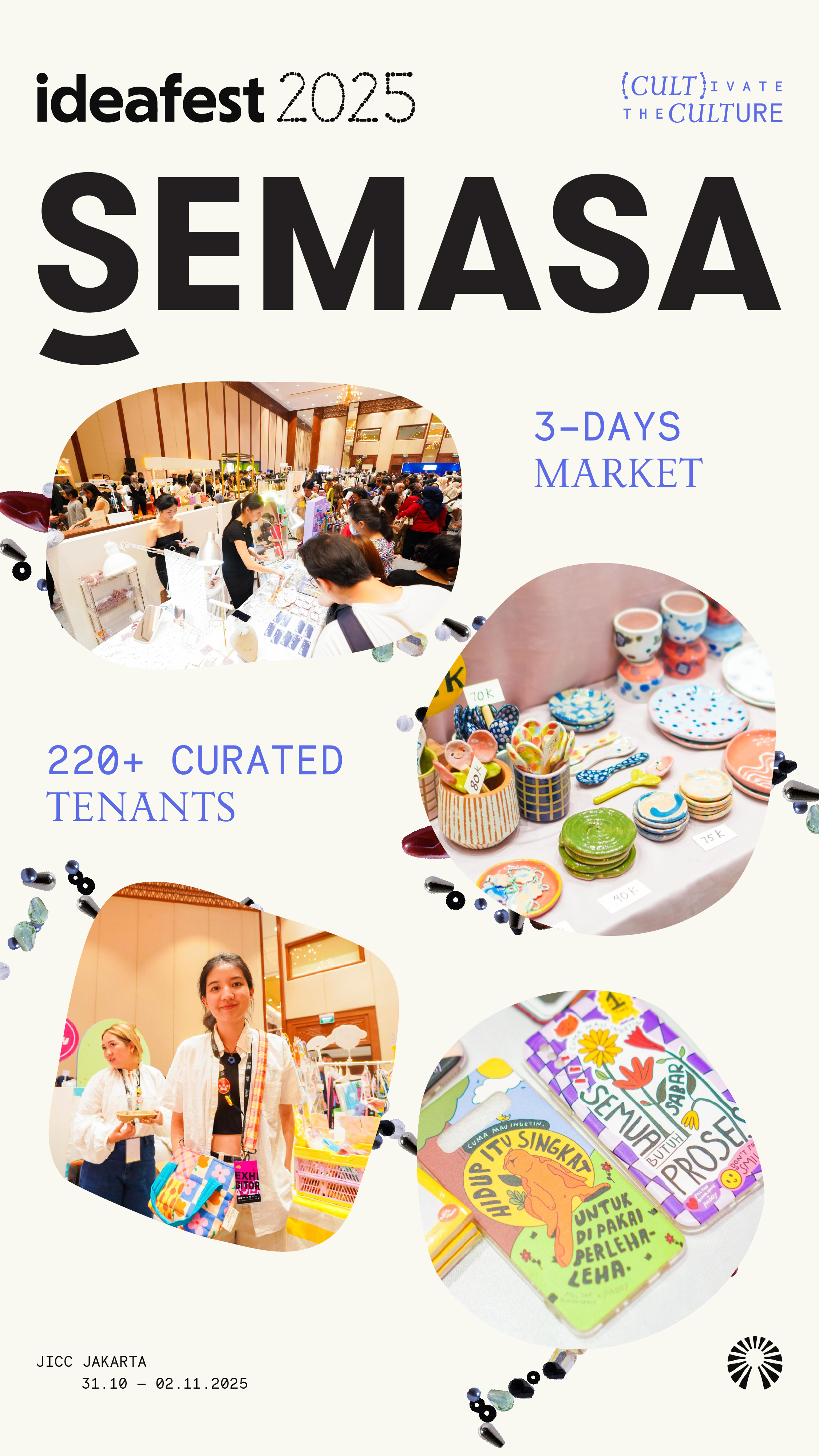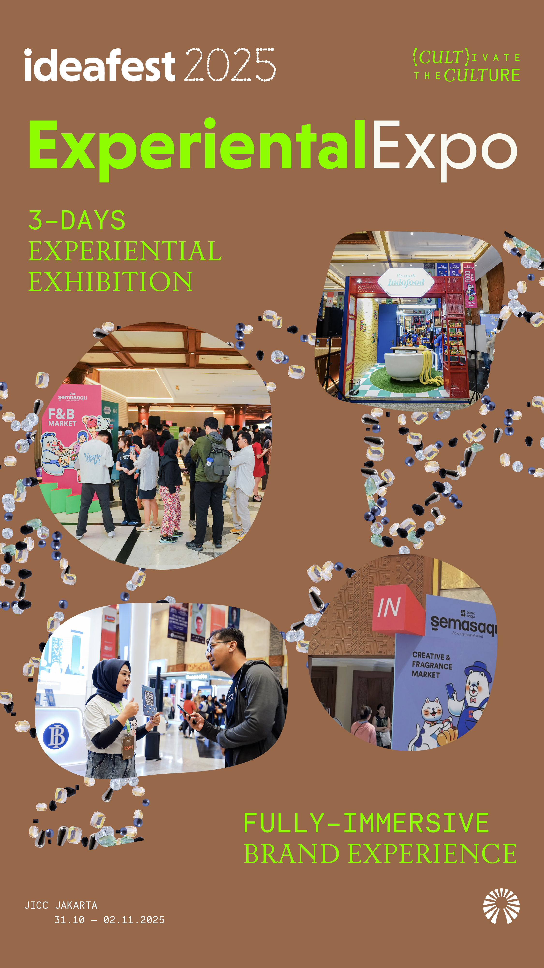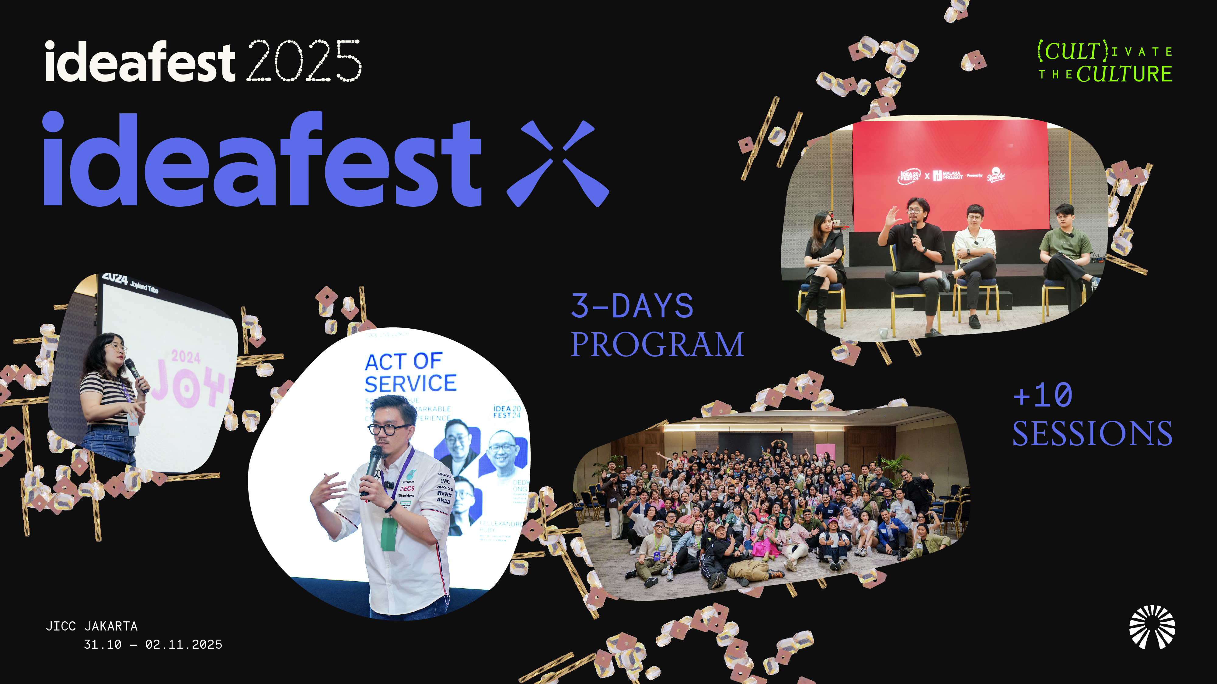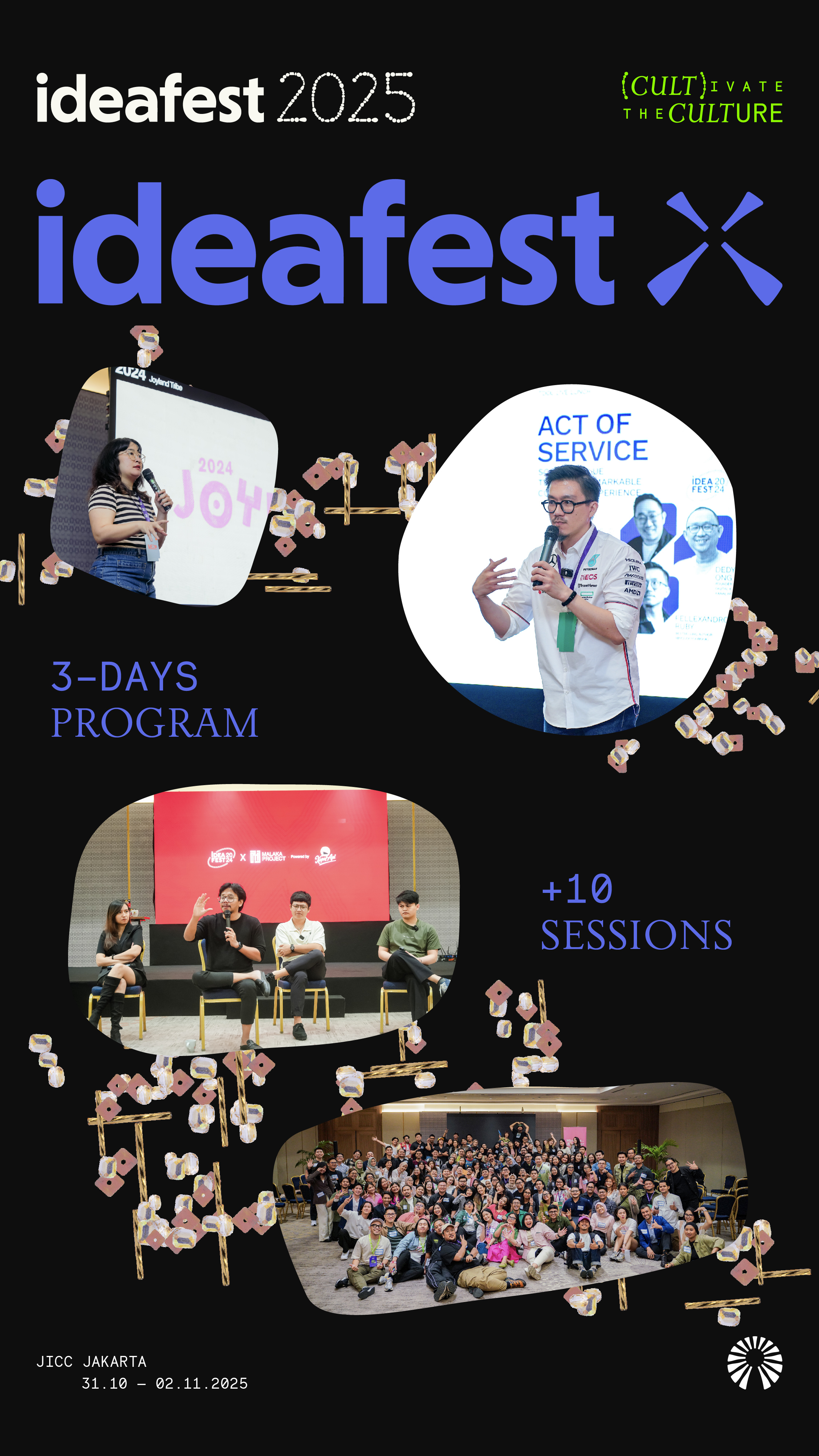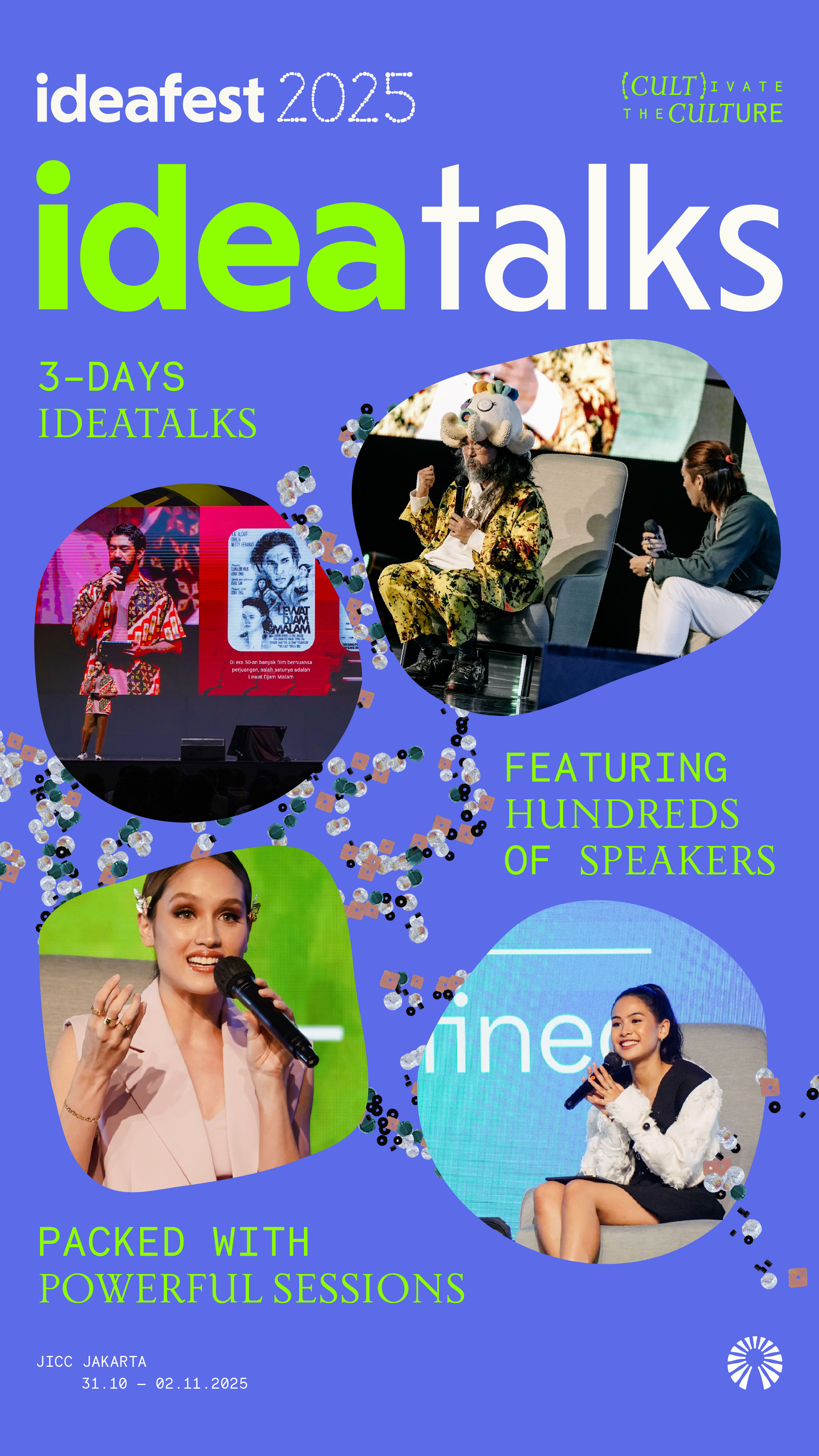 IDEAFEST is Indonesia's leading festival for creativity — a melting pot where diverse minds converge to inspire, challenge, and create. For over 13 years, it has served as a hub for local and global visionaries across industries, igniting collaboration and sparking conversations that shape culture. Each year, the festival explores the ideas that define our time and the people who dare to push them forward.